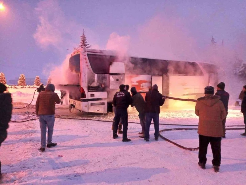 Karaman’da fabrika işçilerini taşıyan servis otobüsünün motor kısmında yangın çıktı.