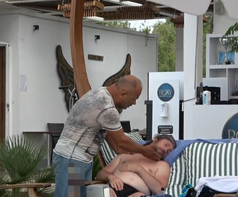 Antalya’nın dünyaca ünlü Konyaaltı Sahili’nde işletmelerin yasal sınırlar dışarısına taşıdıkları öne sürülen masa, sandalye, şemsiye gibi eşyaları, belediye ekipleri tarafından kaldırılmak istendi. Tartışmalara neden olan olaylar anında işletmedeki bir müşterinin hiçbir şeye aldırış etmeden uyumaya devam etmesi ise dikkat çekti. Müşteri, işletme sahibi tarafından yanağına tokat atılarak uyandırıldı.