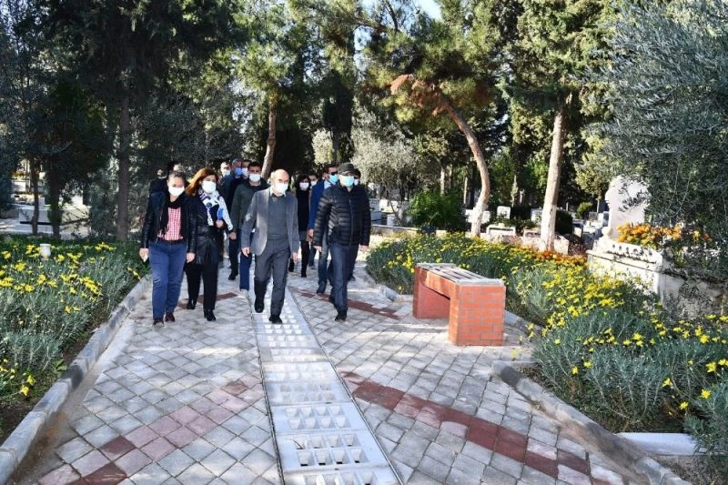 İzmir Büyükşehir Belediye Başkanı Tunç Soyer, altyapısı yenilenen ve peyzaj düzenlemesi yapılan Işıkkent Mezarlığı’na giderek son durum hakkında bilgi aldı. 1982’de yılında hizmete giren mezarlıktaki altyapı sorunlarını çözmek ve peyzajını yenilemek için başlatılan proje kapsamında yürüyüş yollarına yeni parke taşı döşendi, su tesisatı ve hayrat çeşmeleri yenilendi, güneş enerjisiyle çalışan aydınlatma sistemi kuruldu. Başkan Soyer, diğer mezarlıklarda da ağaçlandırma ve peyzaj düzenlemesine önem verilmesi ve çalışmaların hızlandırılmasını istedi.