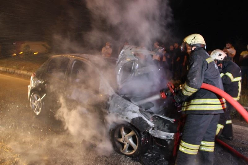 Olay akşam saatlerinde Düzce’de Çerkez Taşköprü kavşağında meydana geldi. Alınan bilgilere göre, Aykut S. idaresindeki 81 ABA 825 plakalı otomobil Çerkez Taşköprü kavşağında ışıkta durdu. Işıkta bekleyen otomobil motor kısmından bir anda alev aldı. Sürücü kendini dışarı atarken çevredeki vatandaşlar yanan araca yangın tüpleri ile müdahale etti. Bölgeye Düzce Belediyesi İtfaiye Müdürlüğü ekipleri sevk edildi. Kısa süre içerisinde olay yerine gelen ekipler yangını kontrol altına alarak soğutma çalışması yaptı. Polis ve jandarma ekipleri ise yangın nedeni ile trafiğe kapalı yolu tek şeritten açtı. Soğutma çalışmalarının ardından araç bulunduğu yerden çekici vasıtası ile kaldırılmasının ardından trafik normal seyrine döndü.