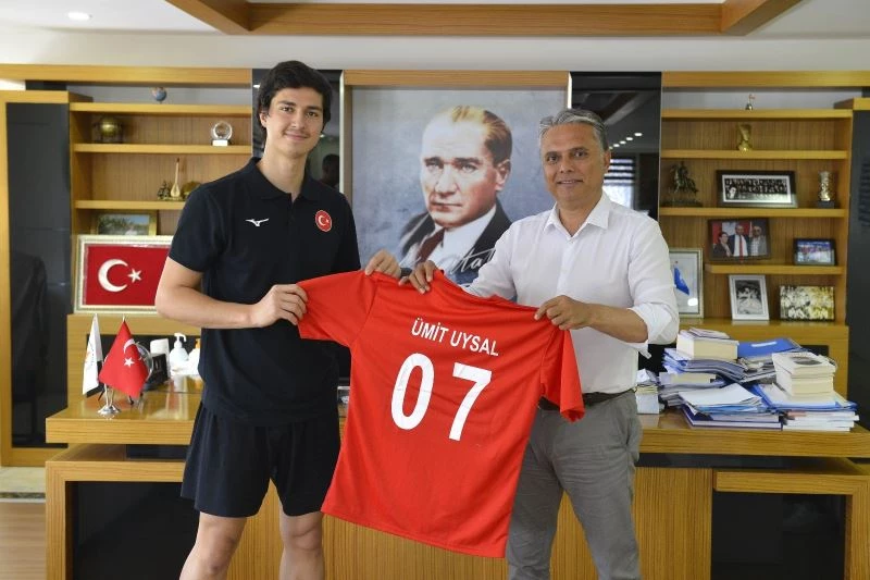 Milli takım antrenörü Serdar Eler, Muratpaşa Belediyesi Spor Kulübü Hentbol Şube Sorumlusu Özcan Yılmaz’ın da yer aldığı ziyarette, Başkan Uysal’a 07 numaralı milli takım forması hediye edildi.