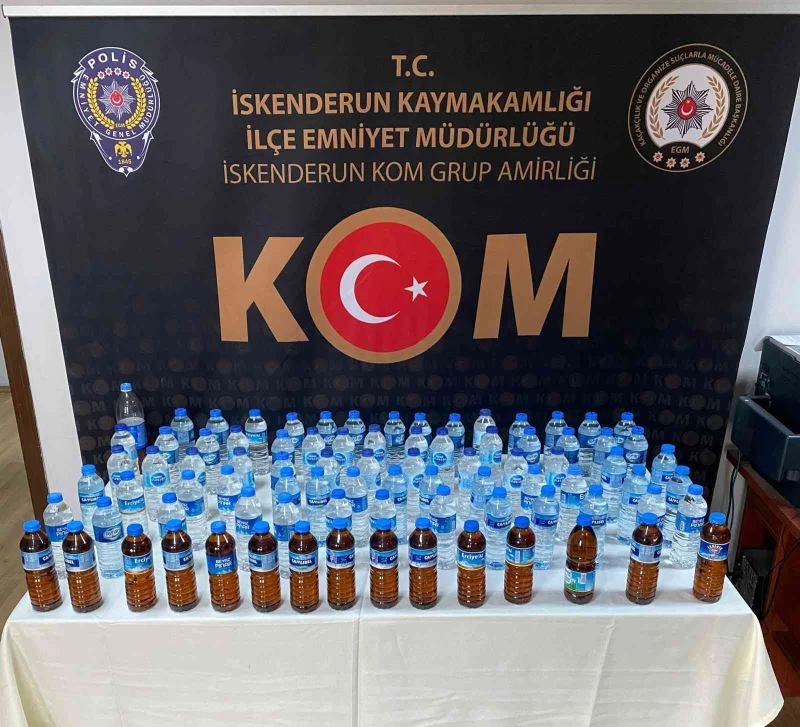 İskenderun İlçe Emniyet Müdürlüğü ekiplerince sahte içki satışına yönelik yapılan çalışma da M.K.’ye ait iş yeri ve ikametinde sahte içki olduğu bilgisine ulaşıldı. Polis bu bilgi üzerine iş yeri ve ikamete baskın yaptı. Yapılan baskında 85 pet şişe sahte içki ele geçirildi. Polis M.K., R.K., N.Ç. ve G.K.’yi gözaltına aldı.
