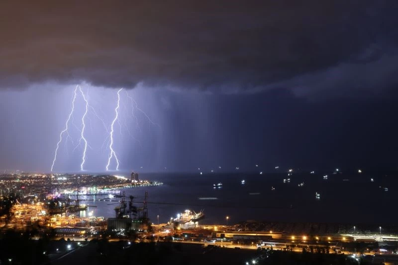 İskenderun’da yağmur bulutlarının gelişiyle birlikte çakan şimşekler körfezde adeta geceyi aydınlattı. Şimşeklerin ardından etkisini gösteren şiddetli sağanak ise şehir merkezinde su taşkınlarına neden oldu. Bazı bölgelerde de elektrik kesintileri yaşandı. İskenderun-Adana yolunda da sağanak nedeniyle sürücüler zor anlar yaşarken, bazı araçlar da yolda kaldı. Hayatın olumsuz etkilendiği yağış yaklaşık 2 saat etkili oldu.