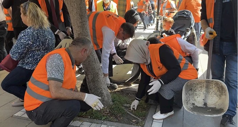 Protokol üyeleri ve gönüllüler, kampanya kapsamında caddede temizlik çalışması gerçekleştirdi.