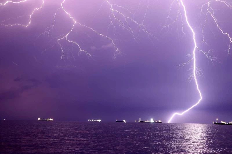 Hatay’ın İskenderun ilçesinde şimşekler görsel şölen oluşturdu. Körfezde gemiler üzerinde çakan şimşeklerin görüntüleri izleyenleri mest etti.