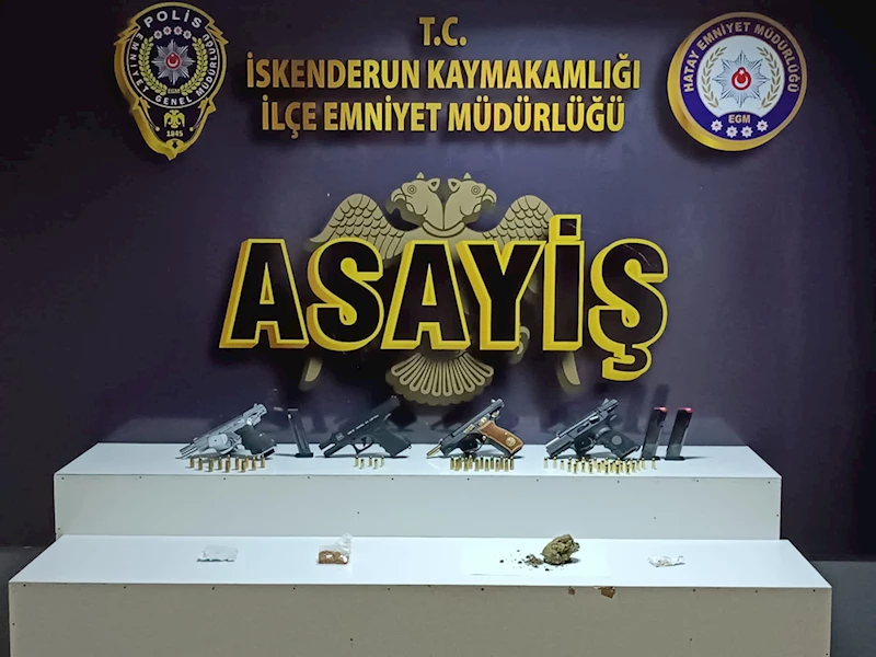 Ekipler aramalarda 4 ruhsatsız tabanca, 6 şarjör, 58 mermi ile 10 uyuşturucu hap, 22 gram esrar ve 6 gram sentetik uyuşturucu ele geçirdi.
