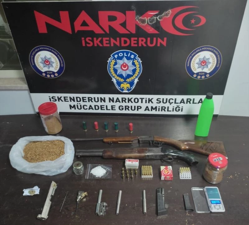 HATAY - İskenderun ilçesindeki uyuşturucu operasyonunda bir miktar uyuşturucu ile ruhsatsız av tüfekleri ele geçirildi, 4 kişi gözaltına alındı.