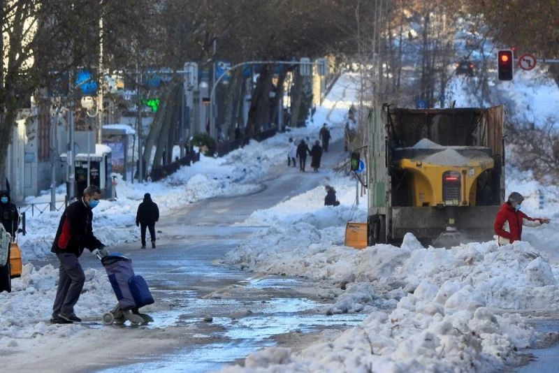 İspanya’da etkili olan son 50 yılın en yoğun kar yağışı nedeniyle hayat durma noktasına geldi. Ülkenin güney ve orta kesiminde kara, hava ve demir yolları ulaşımı kesintiye uğrarken, başkent Madrid’de kar kalınlığı 1 buçuk metreye ulaştı. Kurtarma ekiplerinin hafta sonu karla kaplı araçlardan yaklaşık 2 bin 500 kişiyi kurtardığı aktarıldı. Madrid-Barajas Havaalimanı’nda bugün uçuşlara kademeli olarak başlandığı, demir yolu hizmetinin ise yaklaşık dörtte üç kapasite ile yeniden başlayacağı belirtildi. Olumsuz hava şartlarıyla mücadele kapsamında Madrid’de askerler yolları açma çalışmalarını sürdürürken, oluşan buzun çözülmesi için 3 bin 500 tondan fazla tuz getirildi.