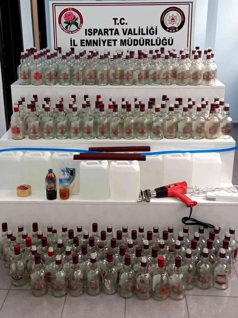 Isparta’da 150 litre sahte alkol yapımında kullanılabilecek malzeme ele geçirildi