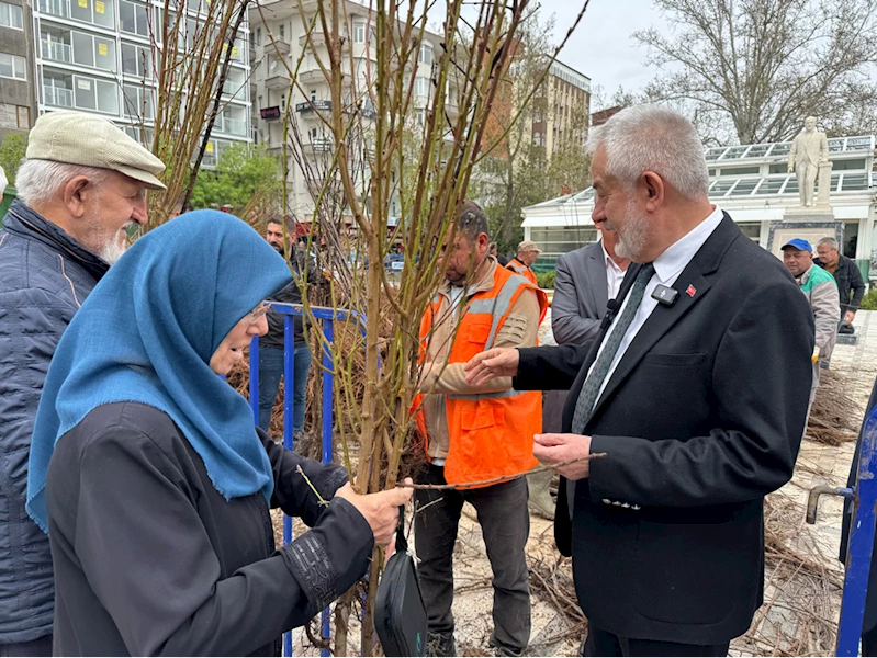 Belediye binası önünde gerçekleştirilen fidan dağıtımına vatandaşlar ilgi gösterdi.