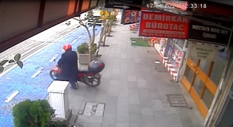 Öte yandan, Ş.Ü.’nün Pirimehmet Mahallesi’ndeki bir işhanından motosiklet hırsızlığı anı güvenlik kamerasına yansıdı. Görüntülerde Ş.Ü.’nün işhanından kafasında kırmızı bir kaskla motosikleti dışarı çıkardığı, bu sırada işhanının kapısını kapadığı görülüyor. Ayrıca şüphelinin ikinci denemesiyle motosikletin üzerine bindiği ve olay yerinden uzaklaştığı da yine görüntülerde yer alıyor.