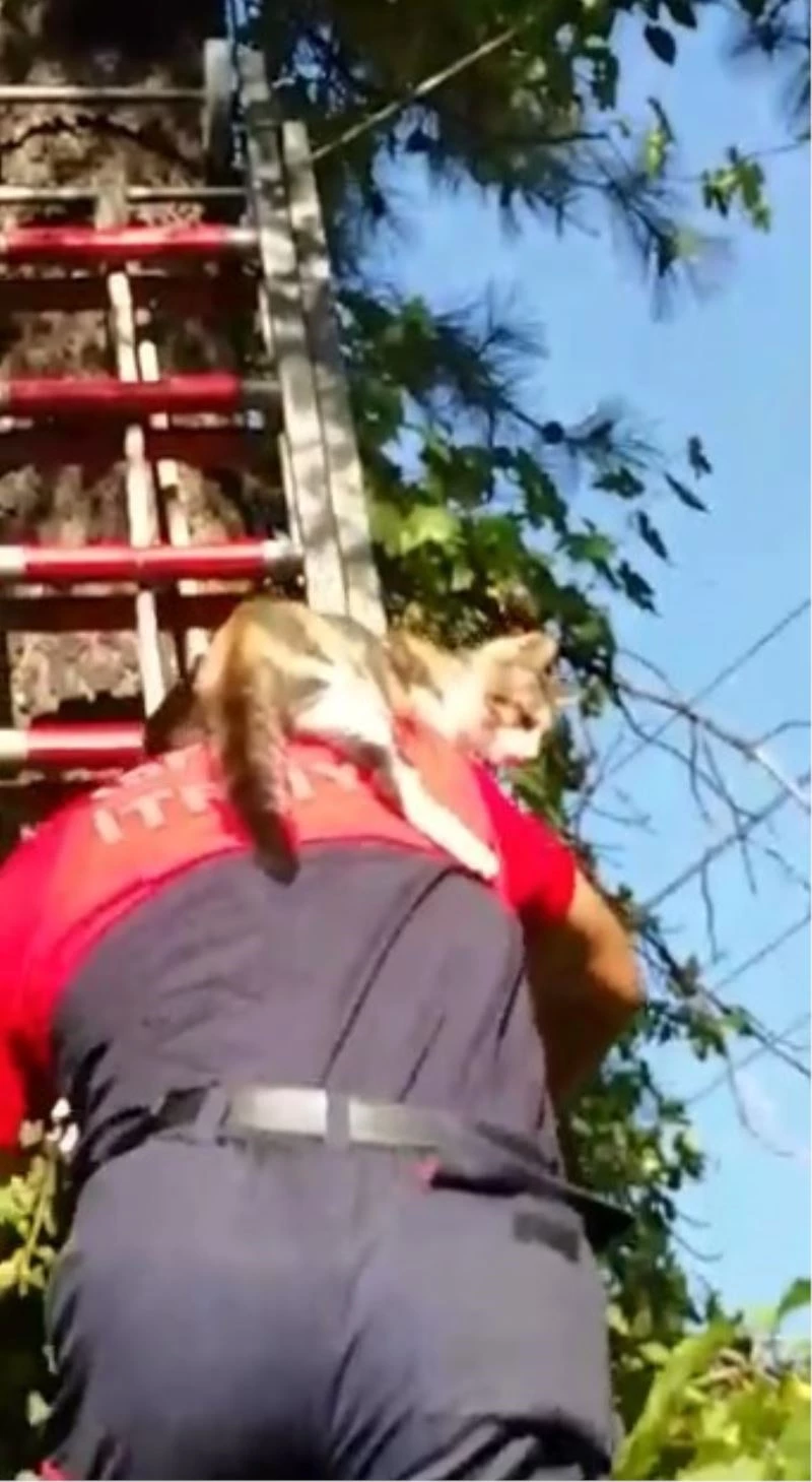 Öte yandan, Doğancı Mahallesi’nde bir ağaçta kedinin mahsur kaldığını gören vatandaşlar itfaiyeye haber verdi. Olay yerine gelen itfaiye ekipleri, merdiven yardımıyla ağaca çıktı. İtfaiye görevlisi kediyi bulunduğu yerden alarak omzunda aşağıya indirdi. Ağaçtan kurtulan kedi, itfaiye görevlisinin omzundan atlayarak, ortadan kayboldu.