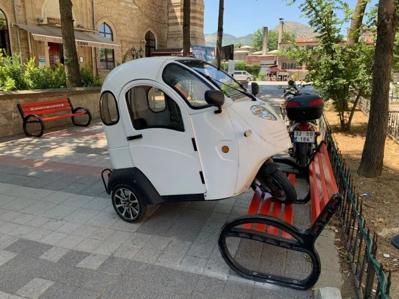 Isparta’da bank üzerinde elektrikli araç görenleri şaşırttı, olay sonradan anlaşıldı