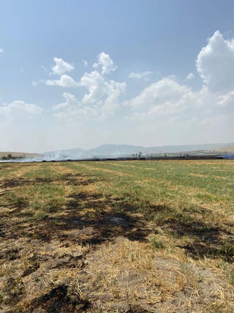 Yangında yaklaşık 120 dekarlık arpa ekili tarla zarar gördü.