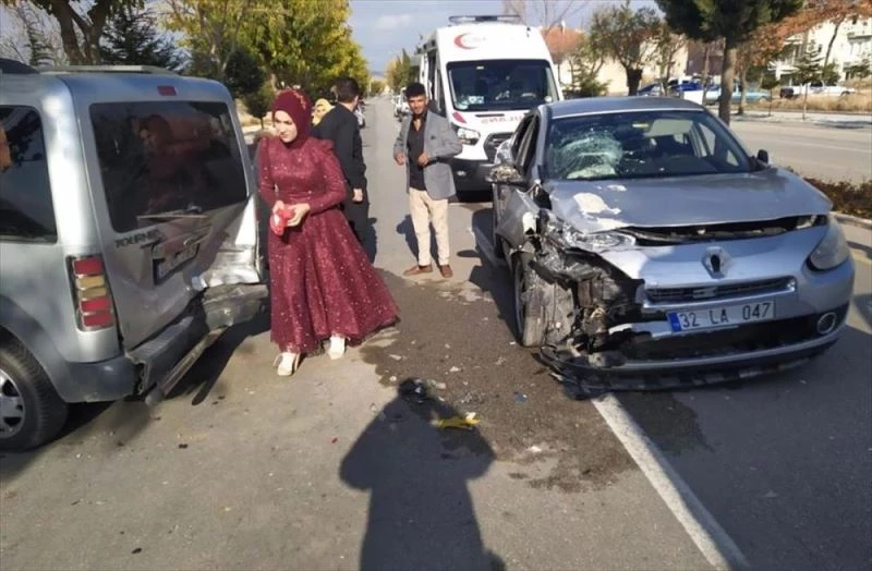 Düğün konvoyunda seyreden Yunus Arslan'ın kullandığı 32 LA 047 plakalı otomobil, Muzaffer Türkeş Mahallesi Devlet Bahçeli Caddesi'nde Emrah Arslan yönetimindeki 32 DM 765 plakalı otomobille çarpıştı
