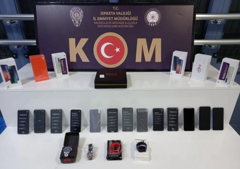 Isparta Emniyet Müdürlüğü ekipleri, kentte düzenledikleri kaçak cep telefonu ve elektronik eşya operasyonunda 13 cep telefonu, 2 kol saati ve 2 akıllı bileklik ele geçirdi.