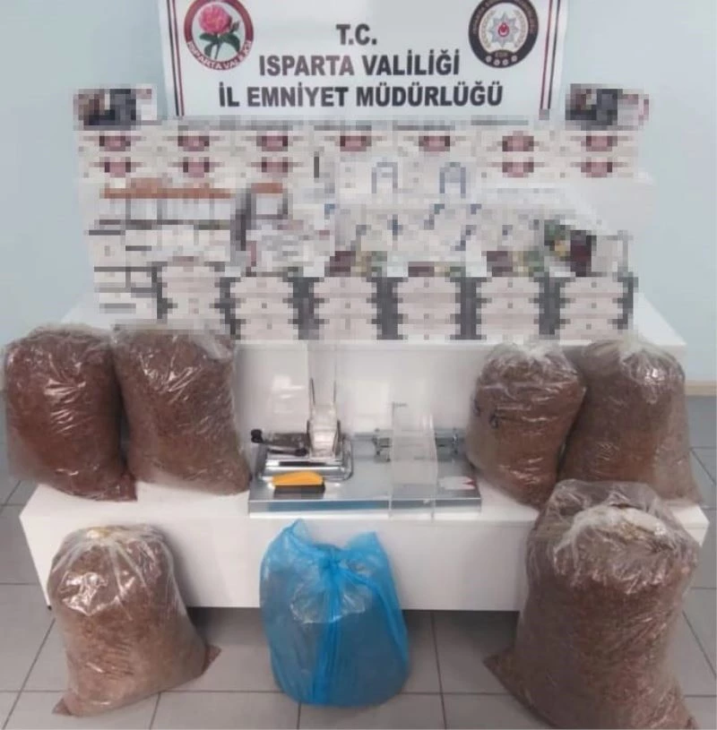 Isparta’da polis ekipleri tarafından yapılan operasyonda çok sayıda kaçak makaron ve tütün mamulü ele geçirildi.