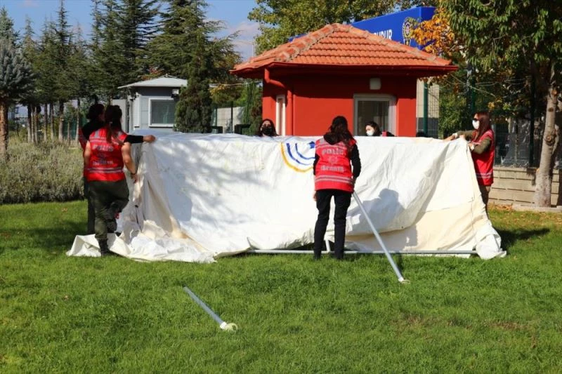 AFAD ekipleri, 2021 Afet Eğitim Yılı kapsamında düzenlenen eğitimlerde, 85 kadın polise afetlere hazırlık amacıyla çadır kurma eğitimi verdi.