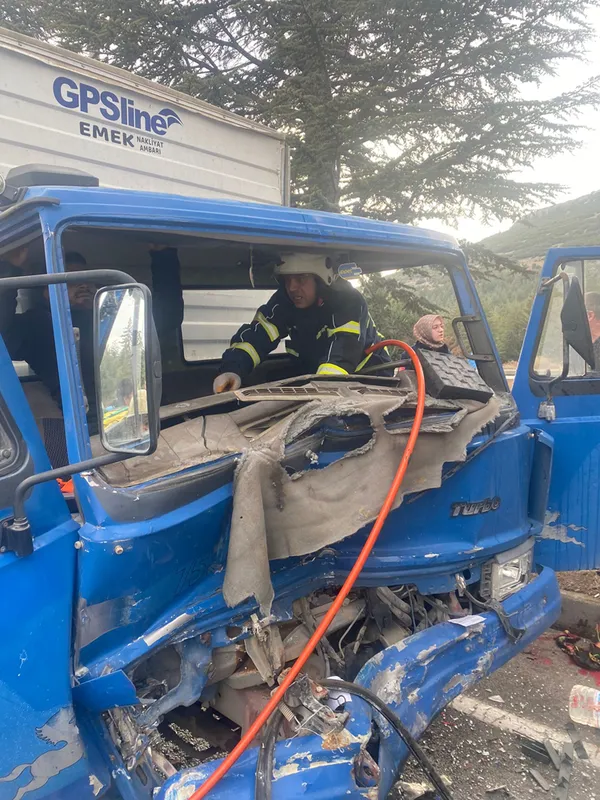 Kazada, kamyon sürücüsü Mehmet Ç. itfaiye ekiplerince sıkıştığı yerden çıkarıldı.