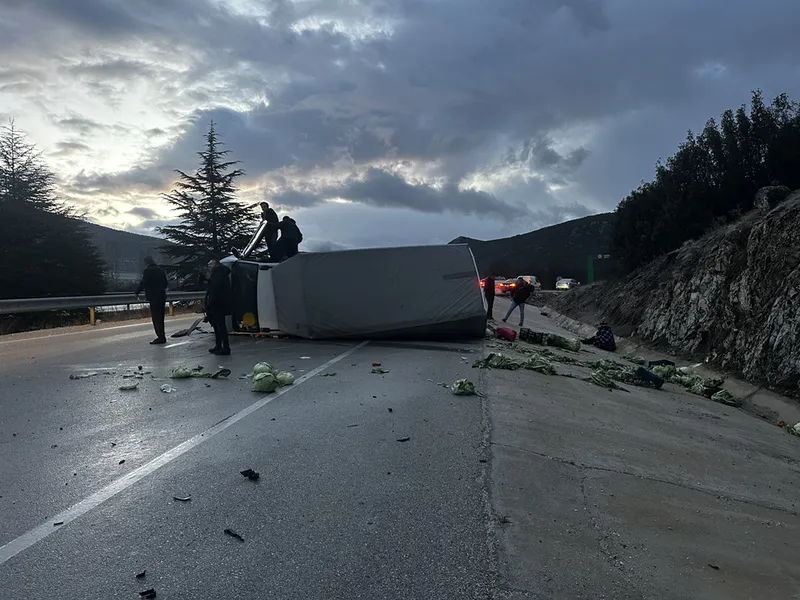 Adnan E. idaresindeki 32 AAB 698 plakalı sebze yüklü kamyonet, Isparta-Eğirdir kara yolu Büyükgökçeli mevkisinde buzlanma nedeniyle kontrolden çıkarak bariyere çarptı.
