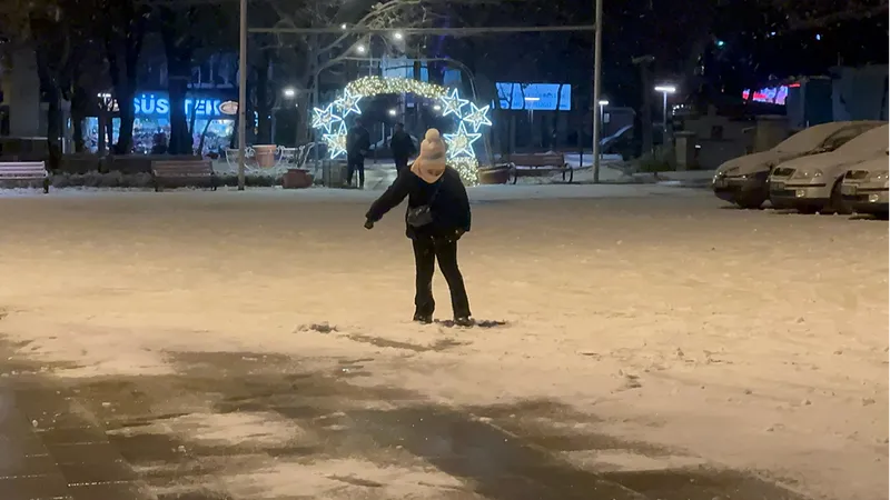 Kent merkezinde aralıklarla etkisini artıran kar yağışıyla birlikte hava sıcaklığı düştü.