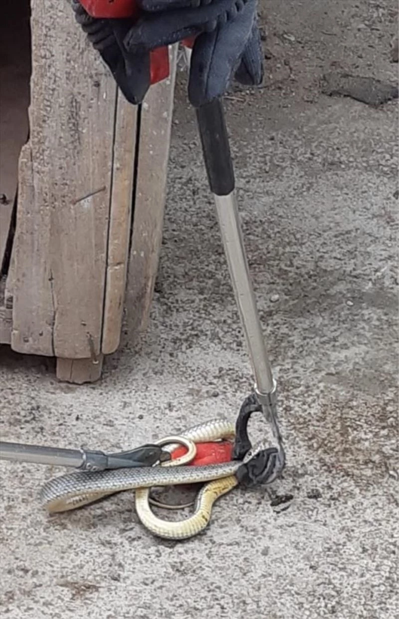 Yakalanan yılan güvenli bir alanda doğal ortamına bırakıldı.