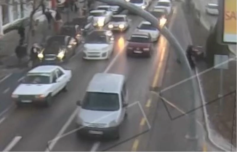 Kent Güvenlik Yönetim Sistemi kameralarına yansıya görüntüde ilginç kaza 102. Cadde üzerinde meydana geldi. Kırmızı ışıkta bekleyen araçların hareket etmesiyle birlikte bir kadının, 3 şeritli yolda, 2 şeridi güvenli şekilde geçtiği, en soldan gelen motosikletin ise kendisine çarpmamak için manevra yaptığı görüldü. Görüntülerde kadına hafif şekilde çarpan motosiklet sürücüsünün refüje devrildiği ve kadının ise geri kaçmaya çalıştığı anlar kaydedildi. Kadının daha sonra düşen sürücüye yardım etmeye çalıştığı ablar an be an kameralara yansıdı.