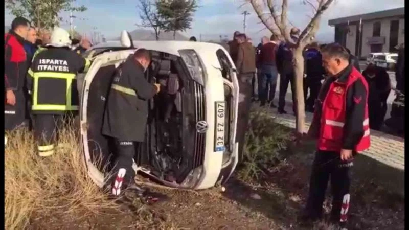 Kaza bugün öğle saatlerinde toptancılar caddesi batı bulvarında meydana geldi. Ahmet Akbay idaresindeki 32 AAY 966 plakalı otomobil ile karşı yoldan gelen Yücel Ayhan idaresindeki 32 FZ 607 plakalı otomobil batı bulvarında çarpıştı. Çarpışmanın etkisiyle Yücel Ayhan idaresindeki otomobil boş araziye takla atarak uçtu. Kazada 2 otomobil sürücüsü yaralandı. Çevredekilerin ihbarı üzerine olay yerine itfaiye ve sağlık ekipleri sevk edildi. Otomobilin takla atması sonucu otomobilde sıkışan sürücüyü itfaiye ekipleri çıkardı. Yarılılara ilk müdahale olay yerinde yapılırken yaralılar daha sonra Isparta Şehir Hastanesine götürüldü. Durumlarının iyi olduğu öğrenilirken olayla ilgili soruşturma başlatıldı. Daha sonra araçlar çekici yardımıyla olay yerinden kaldırıldı.