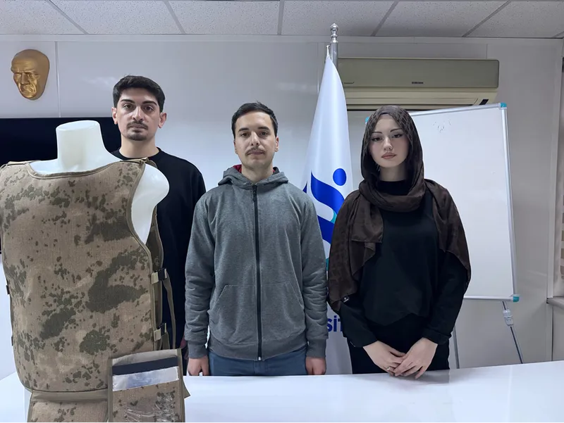 Öğrencilerden Salih Hasan Güven ise projeyle havalı tabanca mühimmatlarına yönelik hafif, etkili ve ekonomik bir balistik koruma sistemi geliştirdiklerini anlattı.
