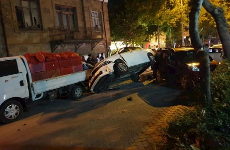 Kazaya karışan bir otomobil park halindeki bir başka otomobilin üzerine çıktı. Kazada yaralanan olmazken 4 araçta hasar oluştu.
