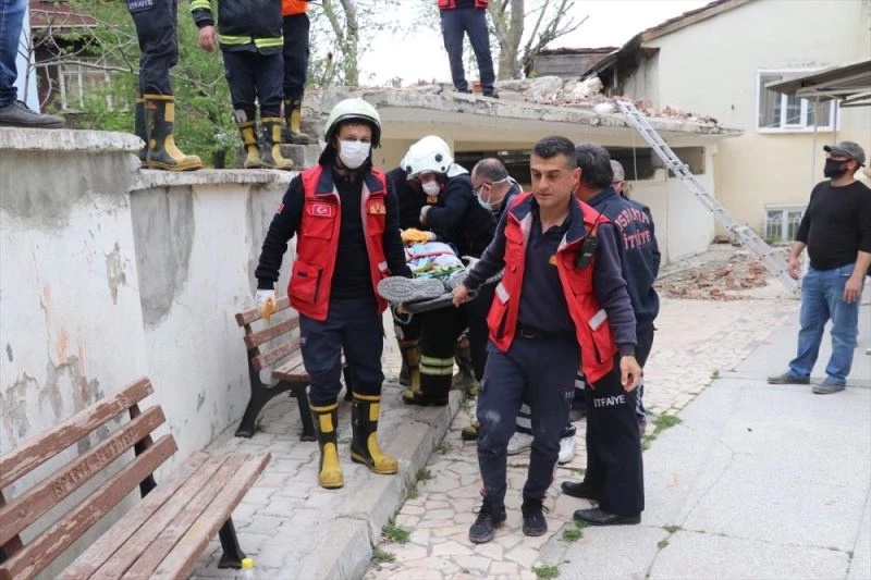 Sermet Mahallesi'ndeki Kıncı Camii şadırvanında onarım yapan Mehmet Andını, yıkmaya çalıştığı duvarın üzerine devrilmesi üzerine sıkıştı.