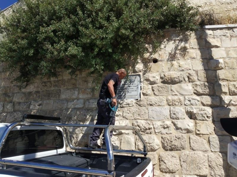 İsrail’e bağlı Kudüs Belediyesi ekipleri, İsrail polisi eşliğinde bu sabah TİKA tarafından yapılan Mescid-i Aksa’nın yanındaki Yusufiye mezarlığının tabelalarını söktü.