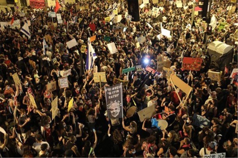 İsrail’de hükümetin yeni tip korona virüsle mücadeleyi kötü yönettiği gerekçesi ve hakkındaki yolsuzluk davası nedeniyle Başbakan Binyamin Netanyahu’nun istifa etmesi için gösteriler devam ederken, polis Kudüs’teki başbakanlık konutu önünde düzenlenen gösteriye yeniden müdahale etti. Yaklaşık 5 bin İsrailli, Netanyahu’yu protesto etmek için başbakanlık konutu önünde toplandı. Protestocular, yolsuzlukla suçlanan Netanyahu’yu artık istemediklerini vurgulayarak, Netanyahu’nun istifasını istedi. Gösteride başbakanlık konutu çevresinde yoğun güvenlik önlemleri alan polis, protestoculara tazyikli su ile müdahale etti. Yerel kaynaklar, polisin müdahalesinde 9 protestocunun gözaltına alındığını aktardı. Öte yandan, İsrail’in farklı bölgelerinde bir aydan fazla süredir Netanyahu karşıtı gösteriler sürüyor. Polis, gösterilere müdahale ederek onlarca kişiyi gözaltına almıştı.