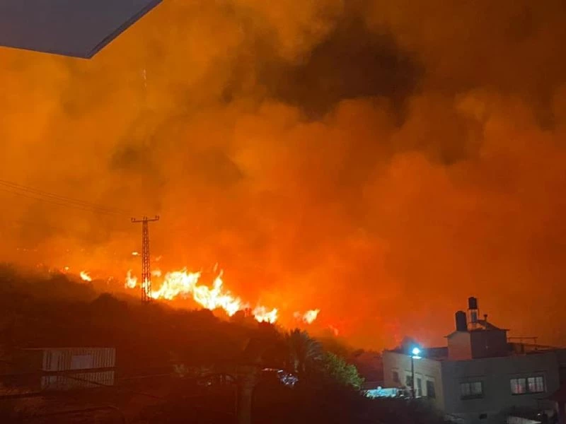 İsrail’in Maghar kentinde çıkan orman yangını yerleşim yerlerini tehdit ediyor.