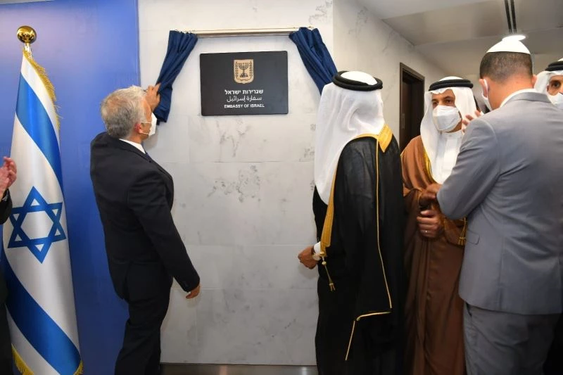 Bahreyn’in başkenti Manama’da İsrail Büyükelçiliği resmi törenle açıldı. Açılış törenine katılan İsrail Dışişleri Bakanı Yair Lapid yaptığı açıklamada, "Halklarımızın sonsuza kadar barış ve refah içinde yaşamasını umuyorum. Bugün İsrail, Körfez’de büyük ve tarihi bir adım attı. Büyükelçiliğin açılması aramızdaki siyasi işbirliğini simgeliyor. Ayrıca yılsonuna kadar İsrail’deki Bahreyn Büyükelçiliğinin açılması konusunda da anlaştık" dedi.