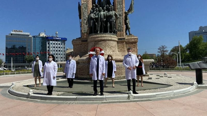 14 Mayıs eczacılık günü dolayısıyla İstanbul Eczacı Odası Başkanı Cenap Sarıalioğlu ve meslektaşları Taksim’deki Cumhuriyet Anıtı’na çelenk bıraktı.
