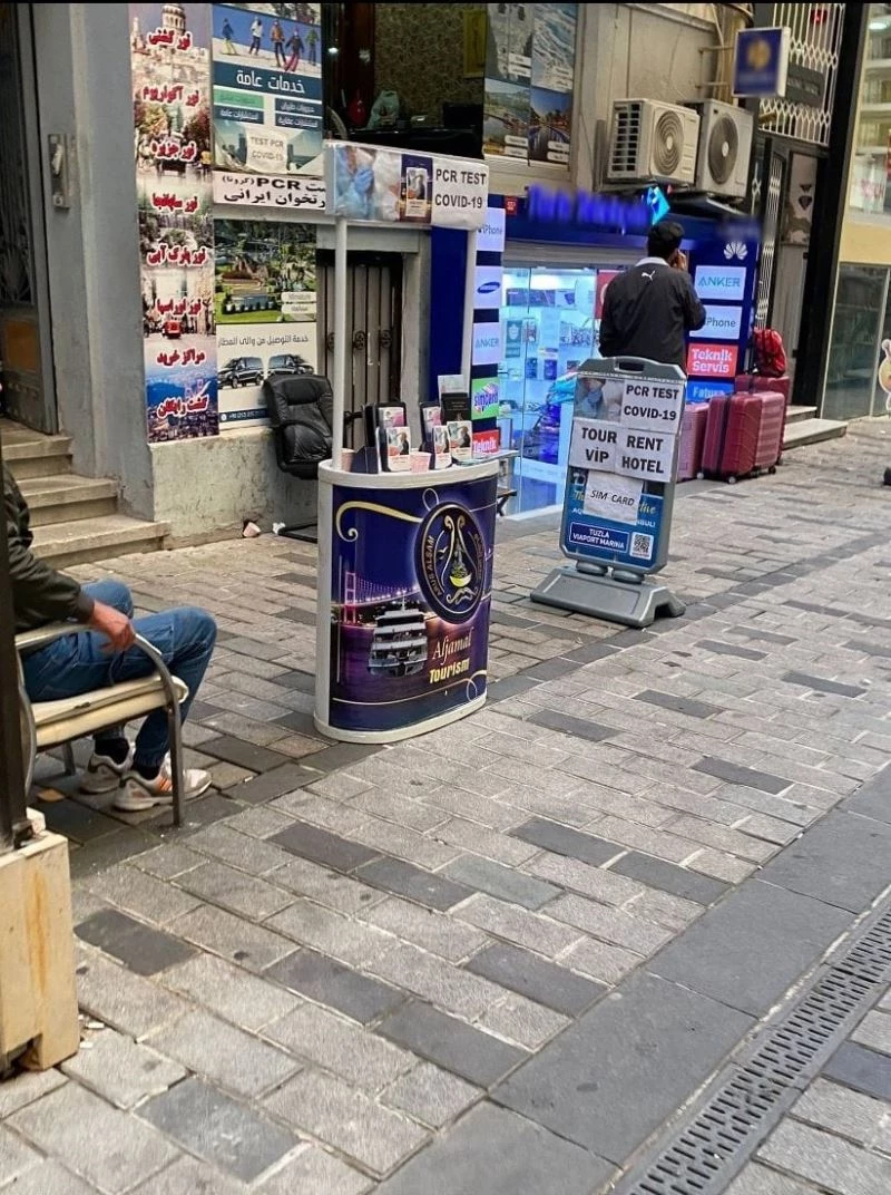 İstanbul Emniyet Müdürlüğü görevlilerince "Kültür Turizm Komisyonu" denetimleri kapsamında yapılan çalışmalarda 12 Ağustos- 12 Eylül tarihleri arasında Beyoğlu Talimhane’de yer alan ve yabancı uyruklu şahıslar tarafından kaçak olarak faaliyet gösterdiği tespit edilen turizm acentesi görünümlü kaçak stantlara yönelik denetim gerçekleştirildi.