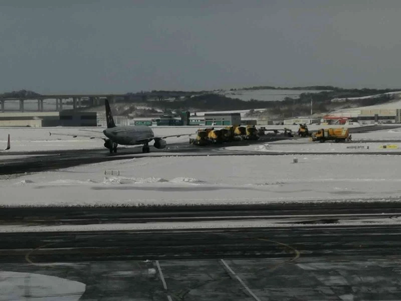 İstanbul’da etkili olan kar yağışı nedeniyle hava ulaşımında aksamaların yaşanmaması için İstanbul Havalimanı’nda toplam 500 personel ve 180 araçla karla mücadele sürüyor.