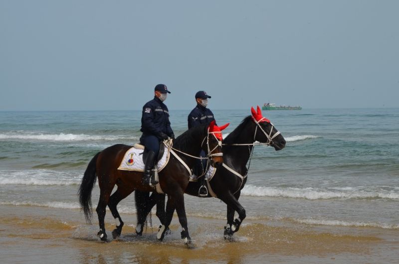 Korona virüs salgını nedeniyle ilan edilen sokağa çıkma kısıtlamasının birinci gününde İstanbul İl Jandarma Komutanlığı’na bağlı Atlı Jandarma Birlikleri, Sarıyer Gümüşdere sahilinde yaptı. Denetimlerde normalde Topkapı Sarayı’nı görev yapan “Atlı Jandarma Birlikleri” görev aldı. Sarıyer’de sahile inmek ya da denize girmek isteyen vatandaşların uyarılması için Atlı Jandarma Birlikleri denetimlerinin kısıtlaması süresi boyunca devam edeceği öğrenildi. Araçların girmesine imkan bulanmayan yerlerde görev alan Atlı Jandarma Birlikleri, denetimlerini sürdürürken, Uskumruköy Kavşağı’nda ise trafik ekipleri geniş çaplı bir denetim gerçekleştirdi. Trafikteki araçları tek tek durduran jandarma, sürücü ve vatandaşların kimlik ile izin belgelerini kontrol etti. Maske ve sosyal mesafe konusunda uyarılarda bulunan ekipler, cenazeden dönen vatandaşlar ise baş sağlığı diledi.