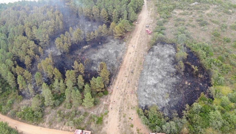 Aydos Ormanı’nda 5 farklı noktada yangın çıktı. Kontrol altına alınan yangında sabotaj ihtimali üzerinde duruluyor. Yangın söndürme çalışmaları ise havadan görüntülendi.