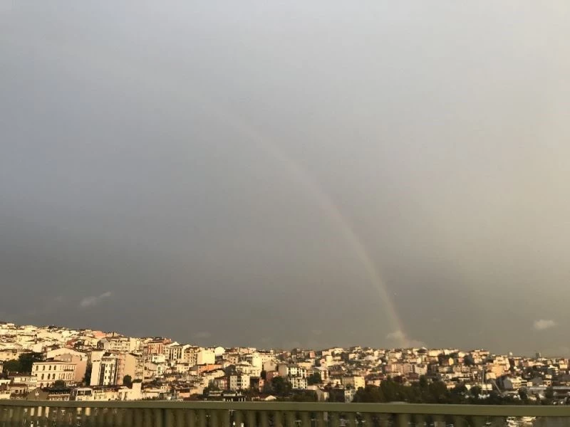 İstanbul’da etkili olan yağmurun ardından havada oluşan gökkuşağının eşsiz manzarası kendine hayran bıraktı.