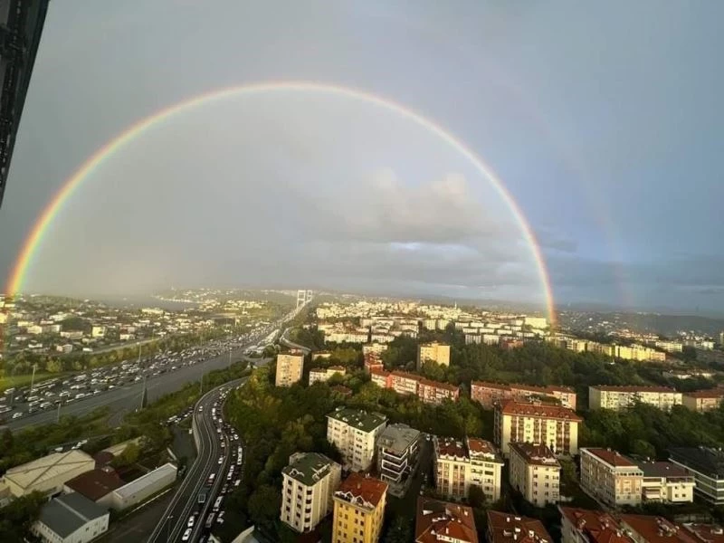 İstanbul’da kısa süreli etkili olan yağışlı havanın ardından gökyüzünde gökkuşağı belirdi. İstanbul Boğazı ve Alibeyköy’de oluşan gökkuşağı megakentin birçok noktasından görülürken, görsel bir şölen oluşturdu. 15 Temmuz Şehitler Köprüsüyle çekilen gökkuşağının görüntüsü ise kartpostallık görüntüler oluşturdu.