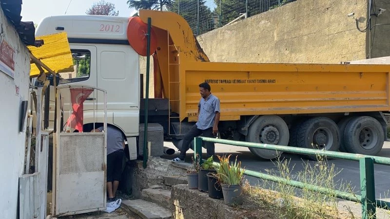 Tarabya’da park halinde olduğu esnada bir anda freni boşalan hafriyat kamyonu yokuş aşağıya kayarak işyerine daldı. Ortalığın savaş alanına döndüğü kazada yaralanan olmazken, vatandaşlar ise ölümden döndü.