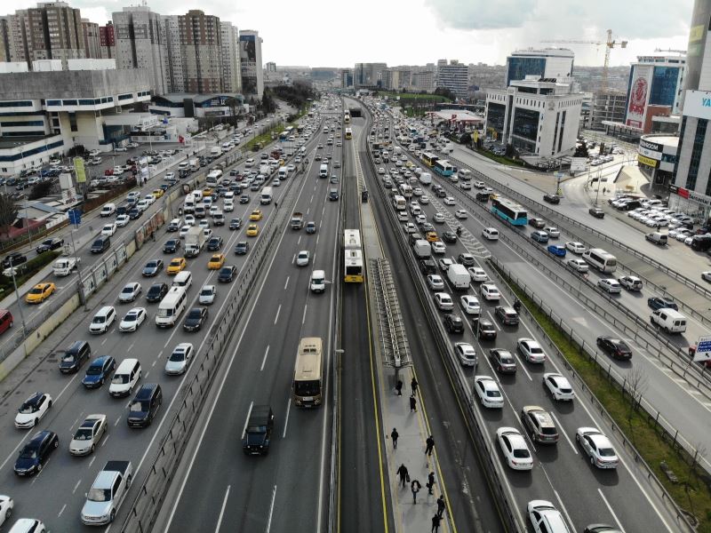 İstanbul’da hafta sonu kısıtlaması öncesi yaşanan trafik yoğunluğu erken saatlerde başladı. Saat 17.00 sırlarında yüzde 67’lere çıkan trafik yoğunluğu Cevizlibağ’da havadan görüntülendi.
