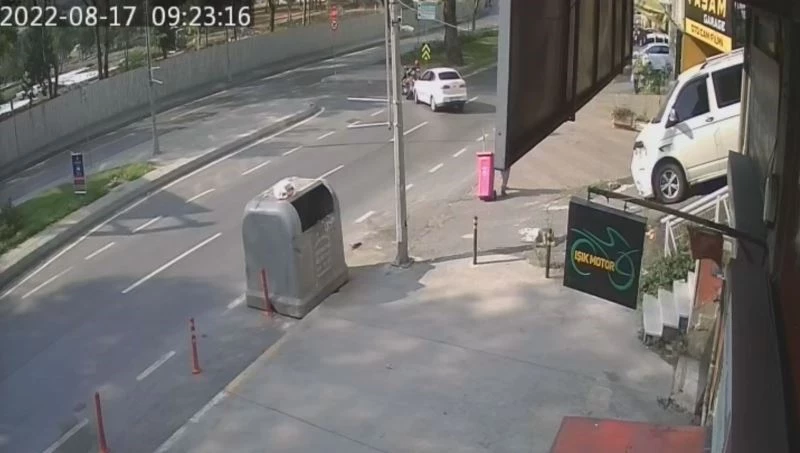 Kaza, geçtiğimiz günlerde saat 09.20 sıralarında Eyüpsultan Esentepe Mahallesi’nde meydana geldi. Edinilen bilgiye göre yol kenarında duran otomobilin sürücüsü, bir anda yola çıkarak hatalı şekilde dönüş yapmak istedi. O esnada seyir halinde olan motosikletli duramayarak otomobile çarptı. Kaza sonucu motosikletli çarpmanın etkisiyle yere düşerken, otomobil sürücüsü ise araçtan inerek yanına gitti. Kaza anı ise kameralara yansıdı. Bacağından yaralanan motosikletli ihbar üzerine olay yerine gelen sağlık ekiplerinin ilk müdahalesi sonrasında ambulansla hastaneye kaldırılarak tedavi altına alındı. Polis ekipleri kazayla ilgili inceleme başlattı.