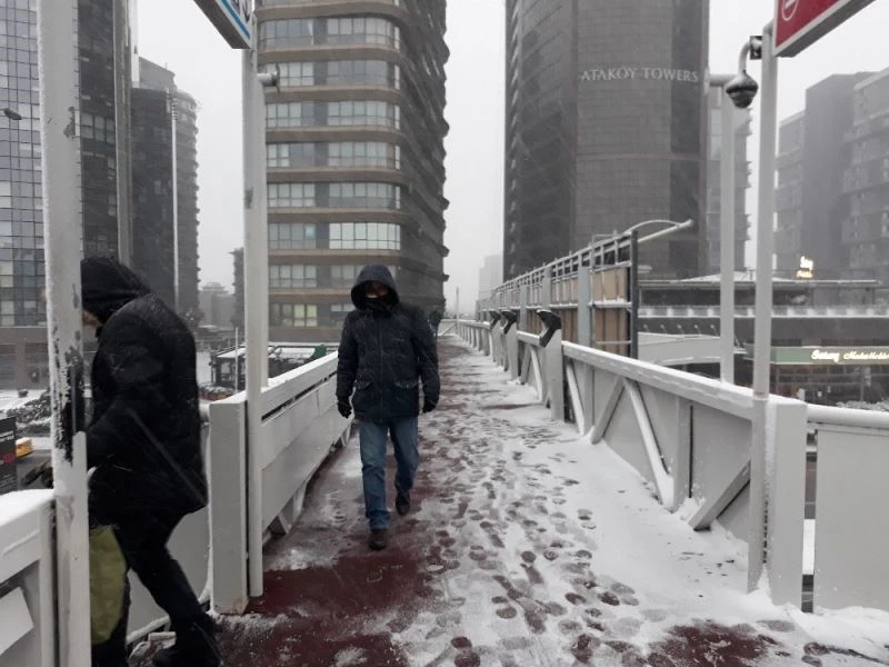 Meteoroloji Genel Müdürlüğü’nün yaptığı yoğun kar yağışı uyarısının ardından İstanbullular güne kar yağışıyla uyandı. Gece saatlerinde başlayan kar yağışı sabahın ilk ışıklarıyla birlikte etkisini göstermeye devam ediyor. Kar yağışının etkili olduğu noktalardan biri de Yenibosna oldu. Hafta sonu kısıtlaması nedeniyle az sayıda araç Yenibosna E-5 üzerinde yerlerini aldı. İşe gitmek için toplu taşıma kullanan vatandaşlar üst geçitlerde kar yağışı ve rüzgarın da etkisiyle zaman zaman yürümekte zorluk yaşadı.