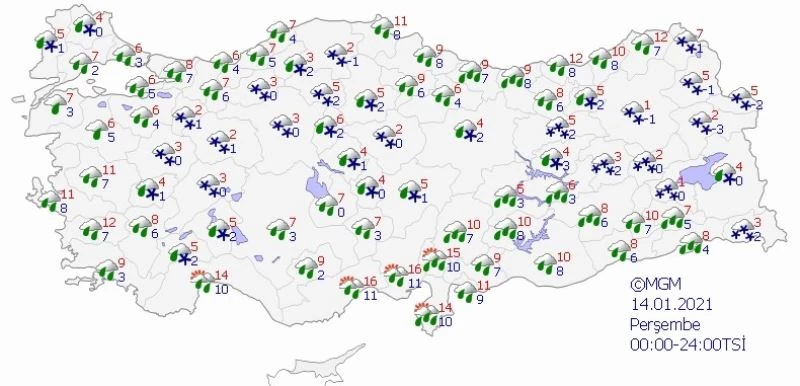 Cumartesi kar yağışlı en yüksek 4 en düşük 0 derece
