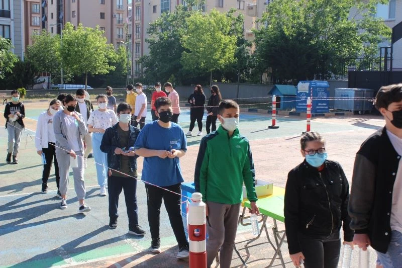 Ataşehir Küçükbakkalköy’de Kemal Berktan Ortaokulunda da sınava girecek öğrenciler okula alınmaya başlandı. Korona virüs salgını nedeniyle sınavla ilgili tedbirler de alındı. Okullarda öğrenciler ve görevliler için maske ve dezenfektanlar hazırlandı. Görevliler öğrencilerin sosyal mesafe kuralına uyması konusunda sık sık uyarıda bulundu. Öte yandan, Emre Aksoy isimli bir öğrenci ise sınava 1 hafta kala bacağından sakatlanması sonrası ayağındaki sargılarla sınav merkezine geldi.