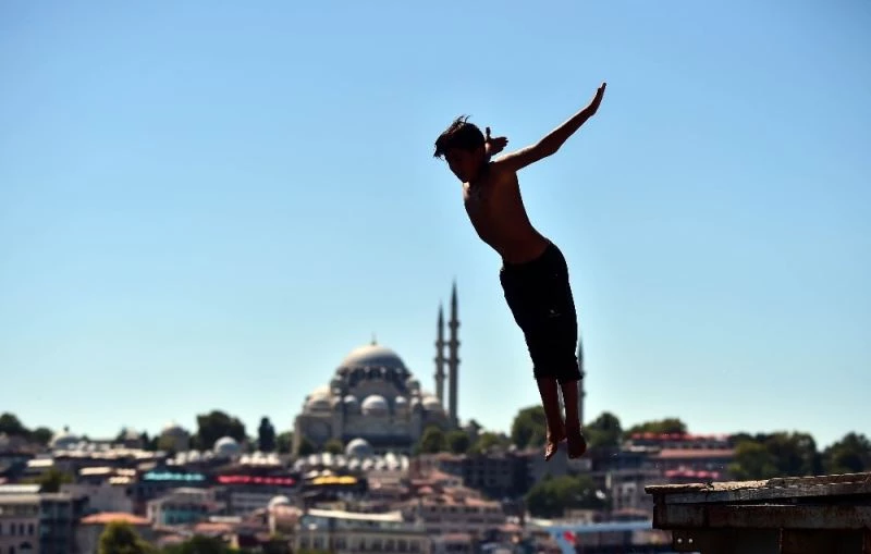 Hava sıcaklığının 32 dereceyi aştığı megakentte sıcaktan bunalan çocuklar denize girerek serinledi. Son günlerde yurt genelinde etkili olan sıcaklar İstanbul’da da hissedilir derecede arttı. Hava sıcaklığının 32 dereceyi aştığı kentte çocuklar serinlemek için denize akın etti. Kavurucu sıcakların etkili olduğu mega şehirde, nem oranının da yükselmesiyle çocuklar Karaköy’de tarihi yarım ada manzarasıyla denize girerek serinledi.