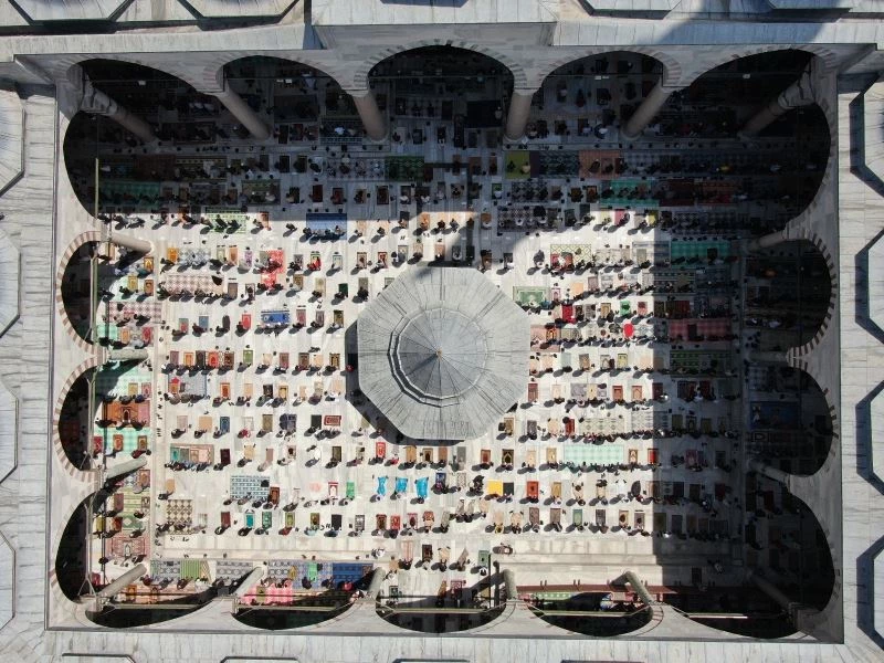 Türkiye genelinde uygulanmaya başlanan 17 günlük tam kapanmada İstanbullar, evlerine yakın camilere giderek cuma namazını kıldı. Fatih Camii’nde sosyal mesafe kurallarına uyularak avluda kılınan cuma namazı drone tarafından havadan görüntülendi.